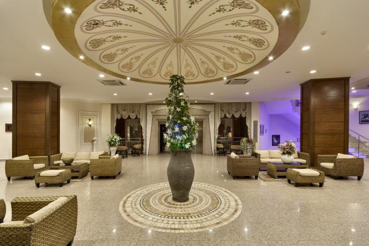 Hotel ima uslugu All Inclusive- samoposluživanje -izbor više jela u glavnom restoranu (doručak, ručak, večera). U koncept usluge su uključeni obroci u glavnom restoranu, popodnevne poslastice i užina u delu kod bazena, sva lokalna alokoholna i bezalkoholna pića. Pored glavnog restorana gostima su na raspolaganju i 2 à la carte restorana (turski i riblji). Poseta ovim restoranima je besplatna jedanput u toku boravka od minimum 5 noći uz obaveznu predhodnu rezervaciju. Pored restorana gosti mogu da koriste usluge i 4 bara (Lobby bar, Pool bar, Bandana bar i Snack bar).