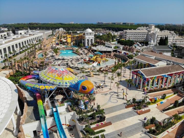 Brojni bazeni - sa talasima, bazen za surfovanje, bazeni sa toboganima (preko 40 tobogana), dečiji bazeni, rolerkoster, 5D bioskop, šou sa delfinima, mini zoo vrt, podvodni safari, stoni tenis, fliper, koncerti, muzički programi, animacije i aktivnosti u mini klubu.