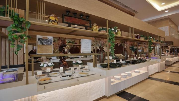 Usluga u hotelu je High Class All Inclusive - doručak, ručak i večera (samoposluživanje - izbor više jela po hotelskim pravilima). U konceptu su i užine, sladoled, lokalna alkoholna i bezalkoholna pića. Hotel u ponudi pored glavnog restorana, ima nekoliko a la carte restorana (uz prethodnu rezervaciju) - Ristorante Malena – italijanska kuhinja (besplatno), Topkapi – turska kuhinja (besplatno), Ariel – doručak na plaži (besplatno), Yumi – suši (uz doplatu), Mongo Mongo – mongolska kuhinja (uz doplatu).